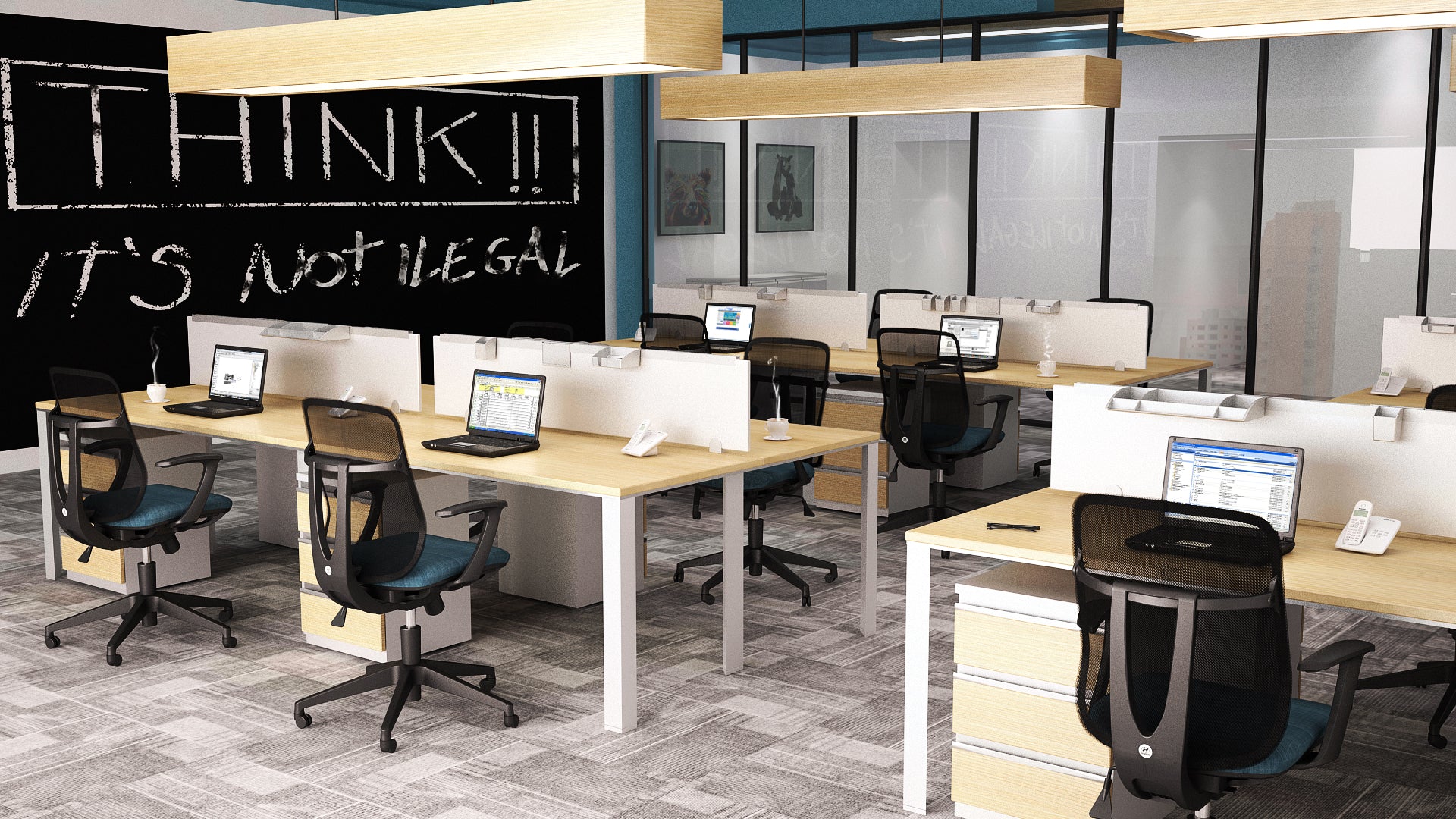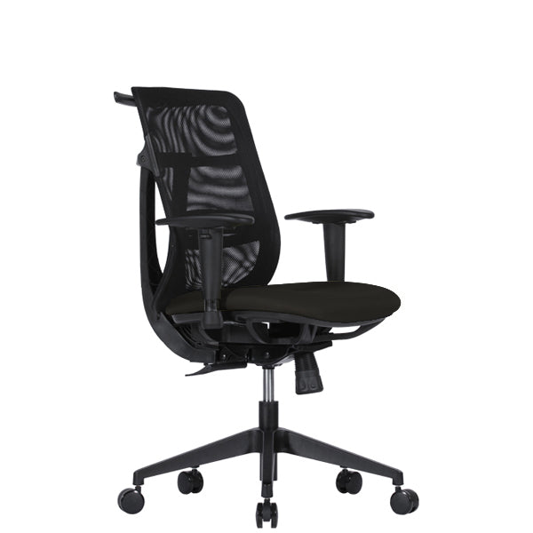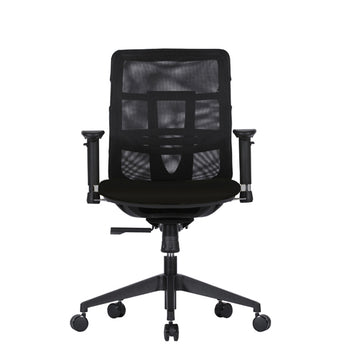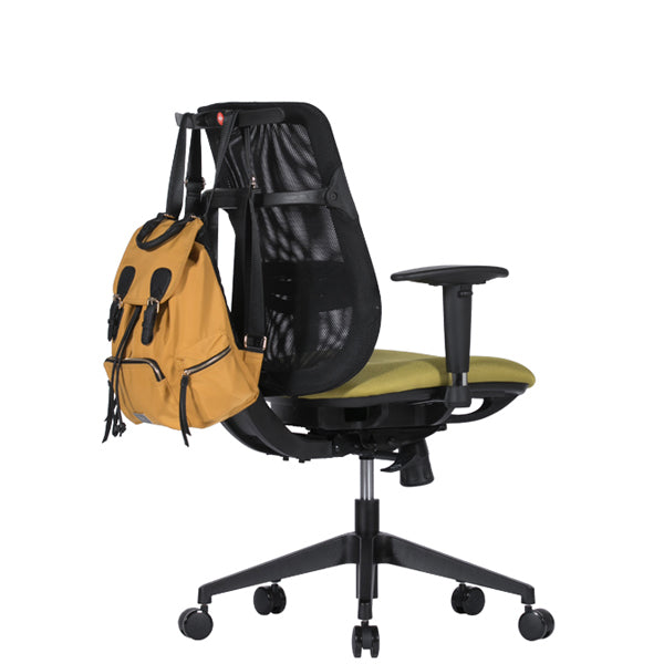 La principal cualidad ergonómica de respaldo es su flexión, que se adapta y sostiene durante los movimientos del trabajo diario. Su respaldo tapizado en tela red posee apoyo lumbar