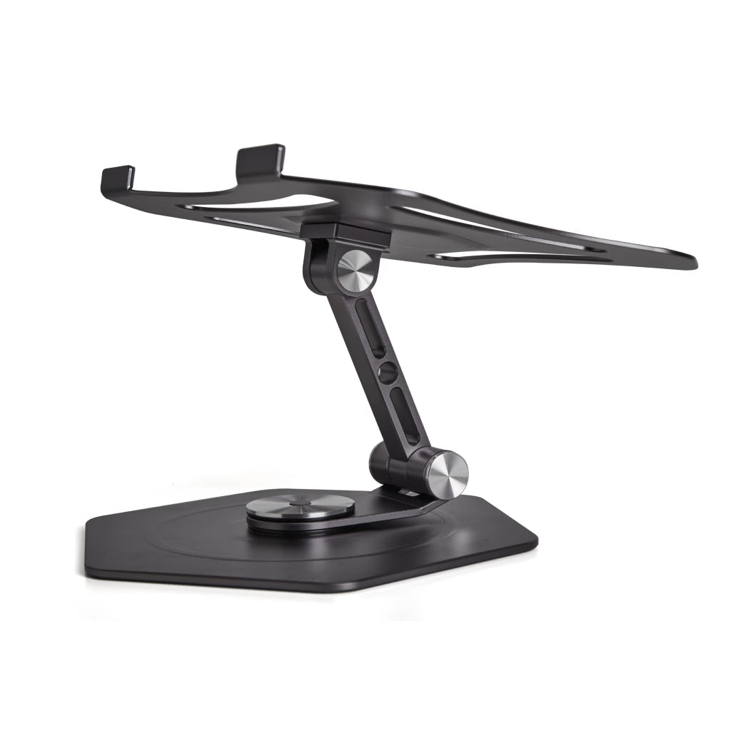Este soporte de acero con rotación 360° está diseñado para mejorar tu postura, facilitar el trabajo colaborativo y optimizar la ventilación de tu laptop. Es ideal para escritorios de oficina o espacios de home office que buscan funcionalidad y diseño en un solo producto.